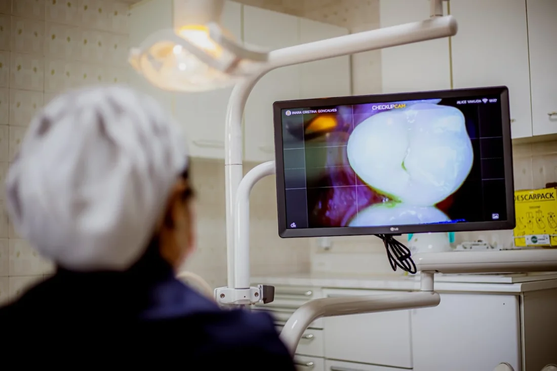 O check-up digital utiliza uma câmera com aumento de até 60x, permitindo identificar lesões cariosas,